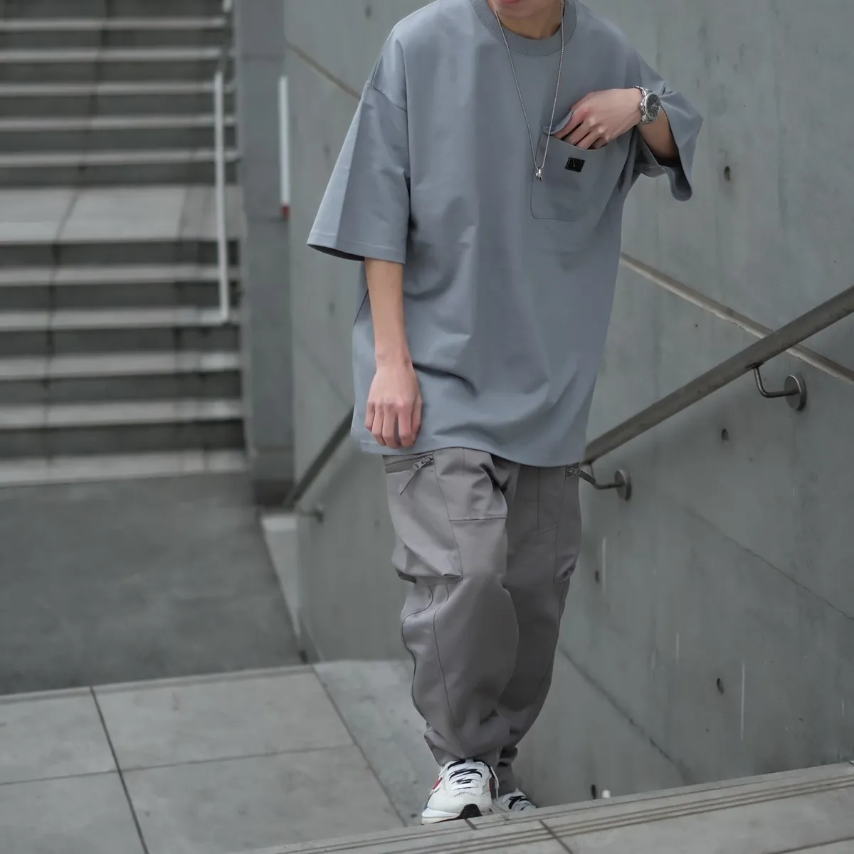 日系寬鬆落肩版型 實著效果呈現俐落慵懶感