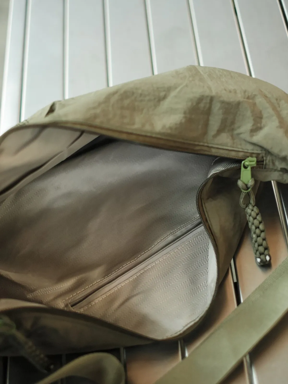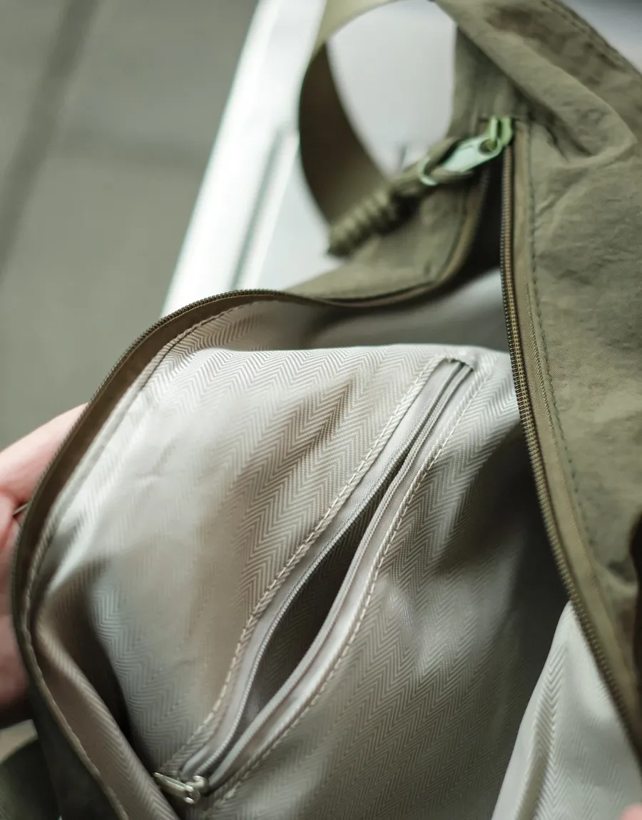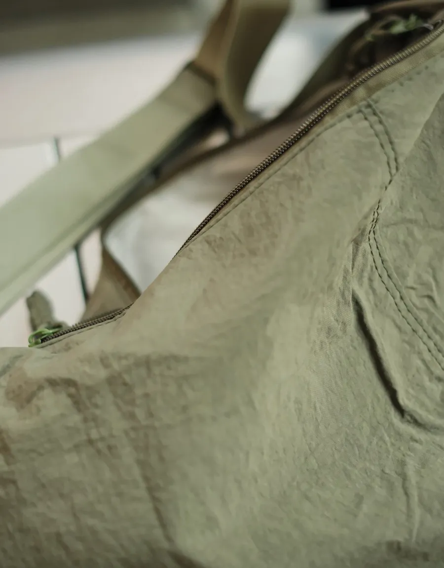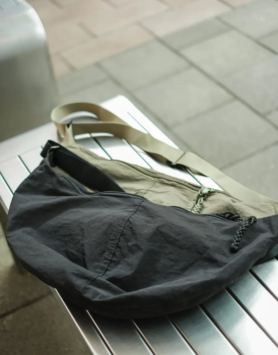 商品描述 包包為尼龍防潑水抓皺的材質 表面自然褶皺感 內大容量的空間 內裡有三層袋分類物品 適合常常需要攜帶較多物品的你們 版型為圓弧造型 搭配上俐落有型 編織拉鍊頭 增加整體細節 男女生都非常合適的單品 休閒工裝日系韓系皆可搭配