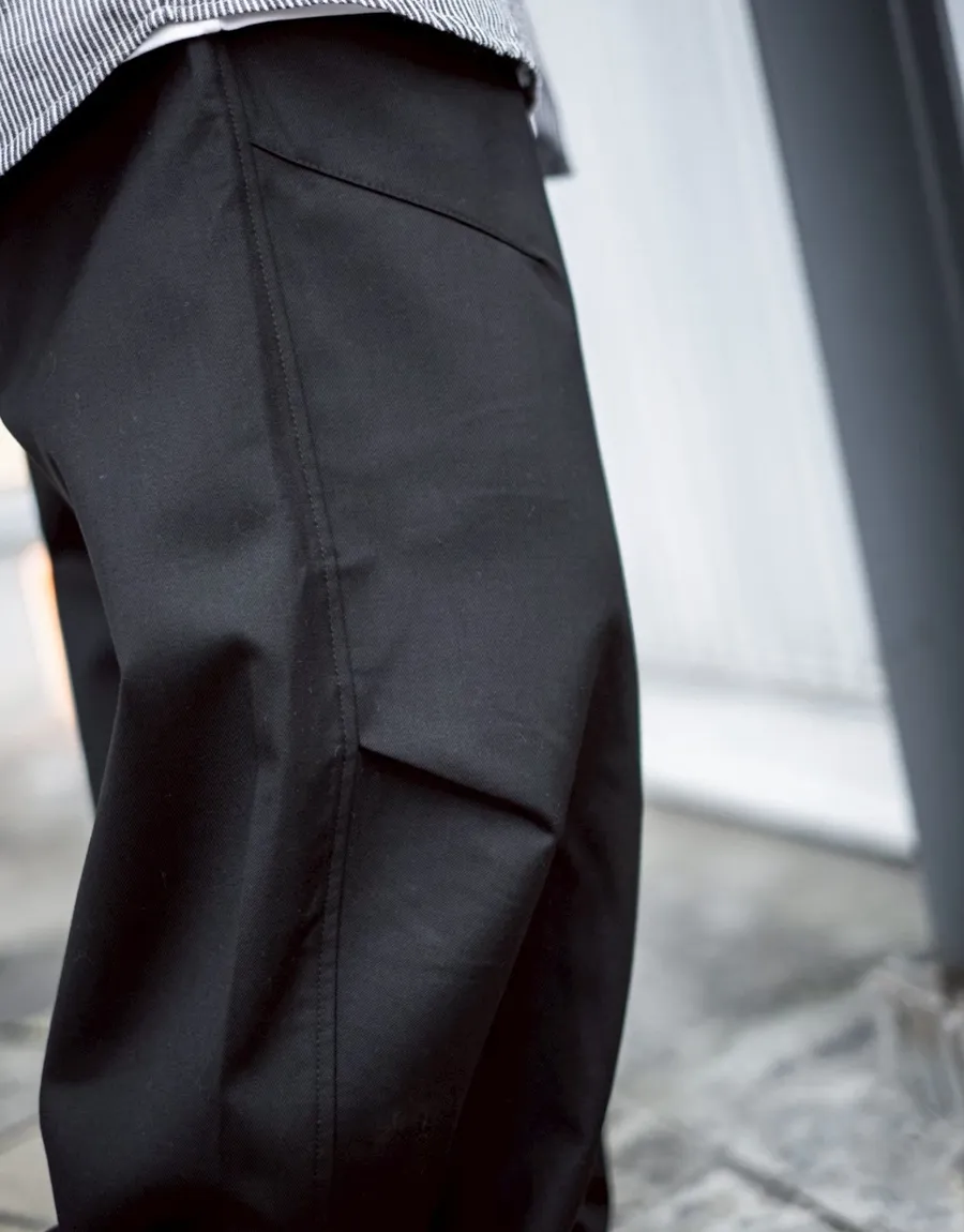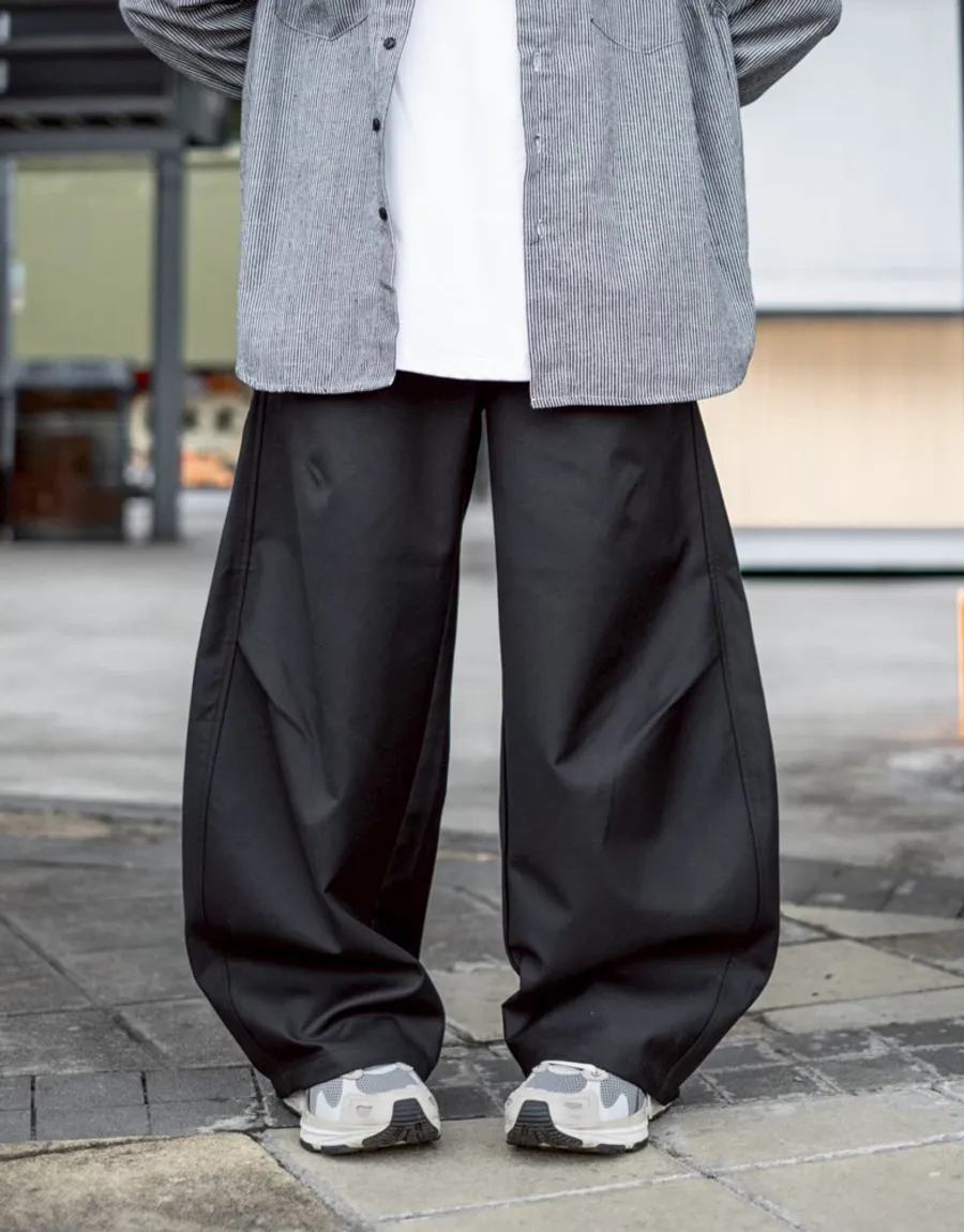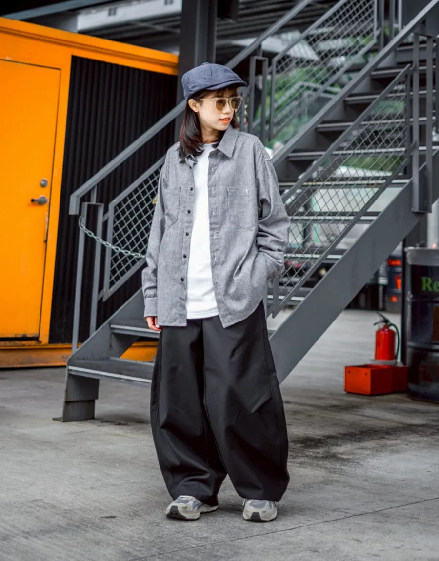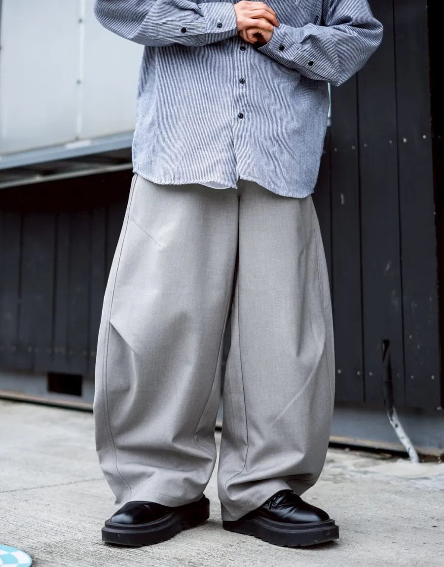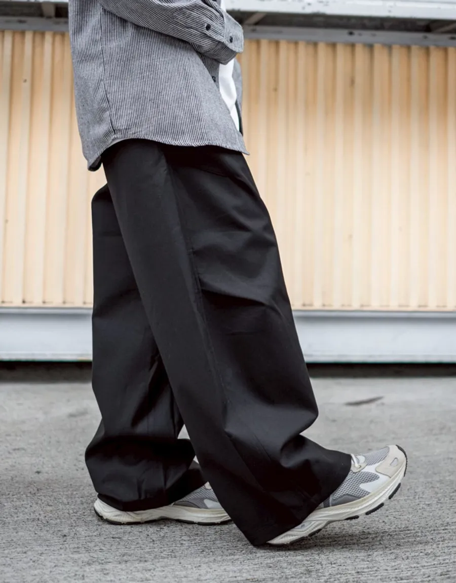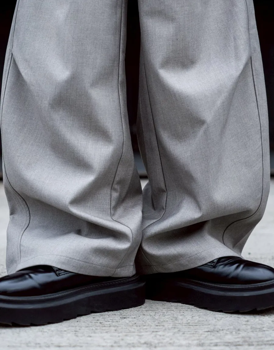 褲腳側邊斜線壓折設計 塑造立體輪廓與比例延伸