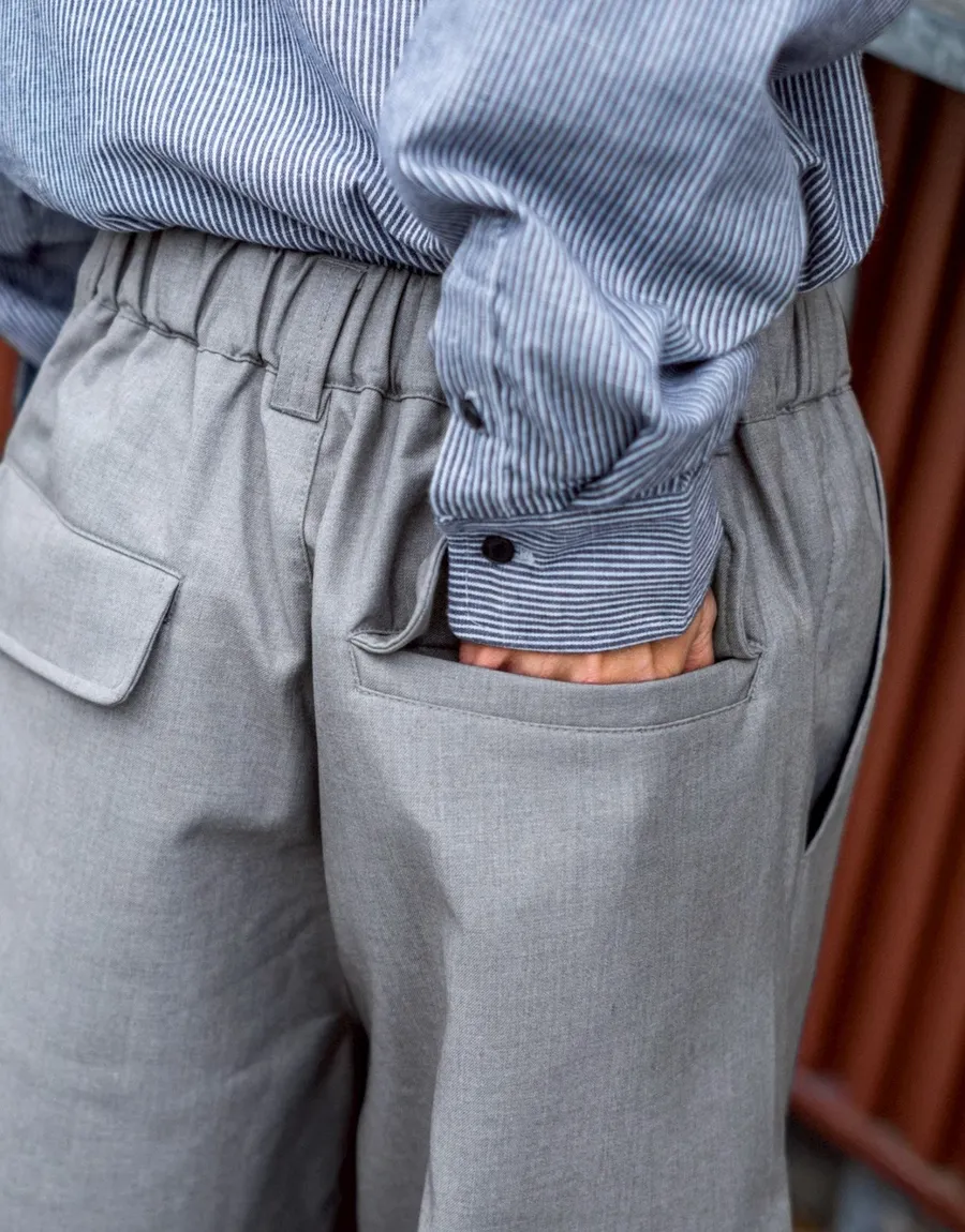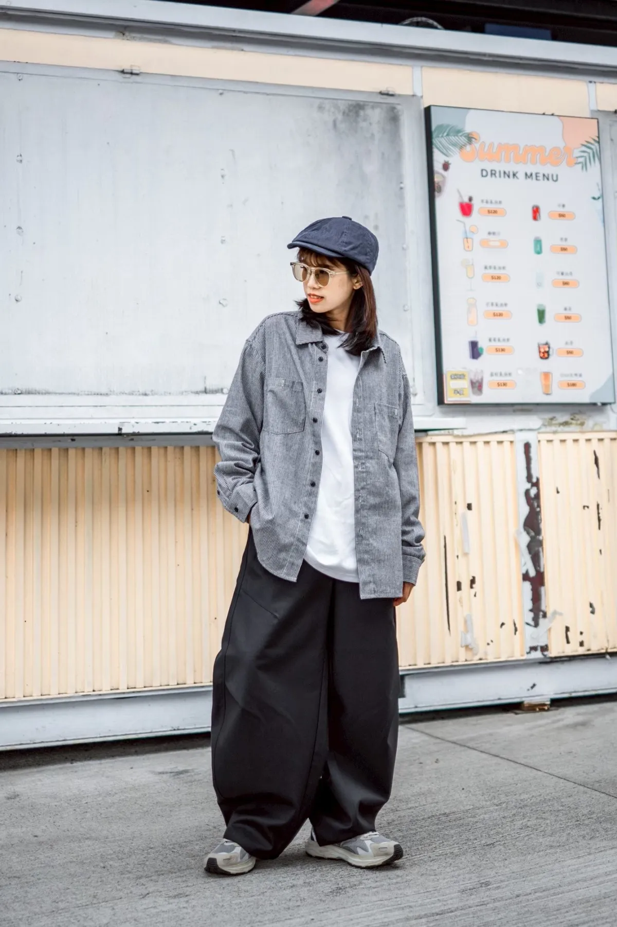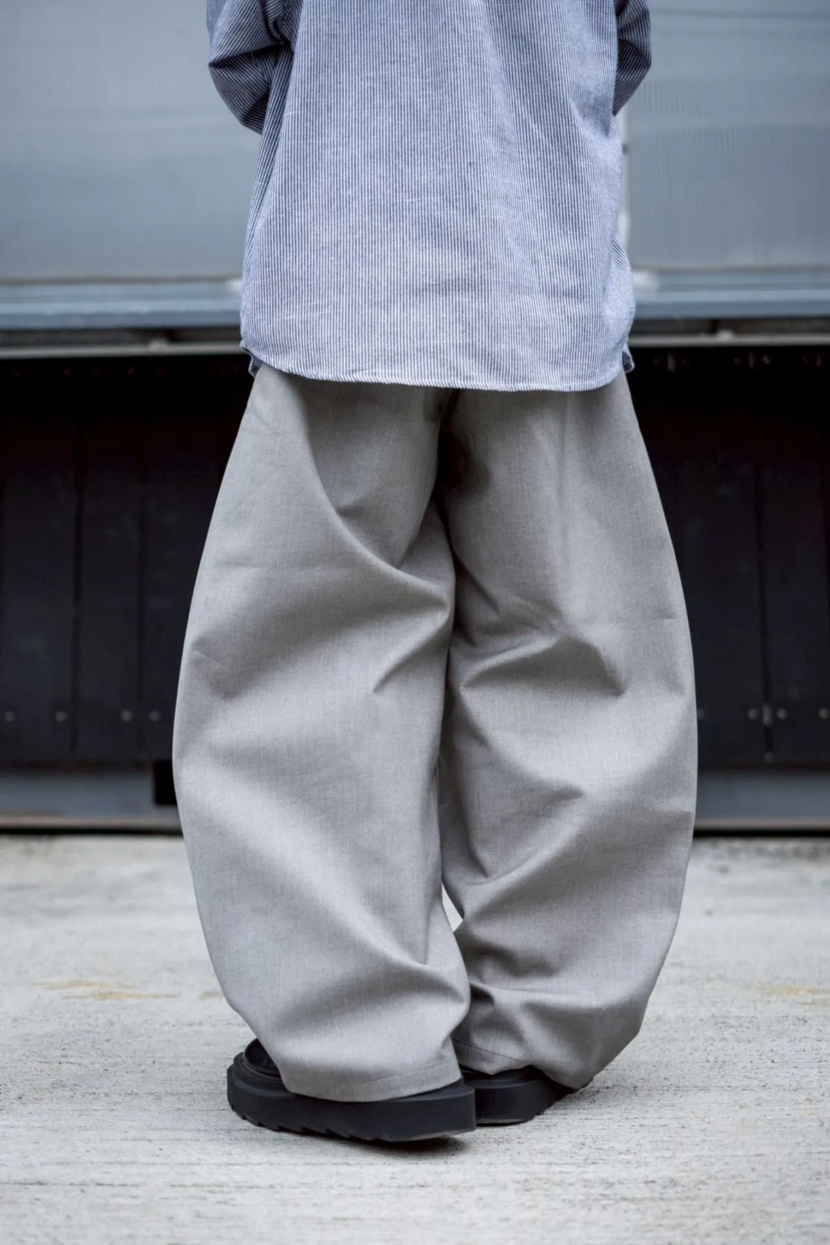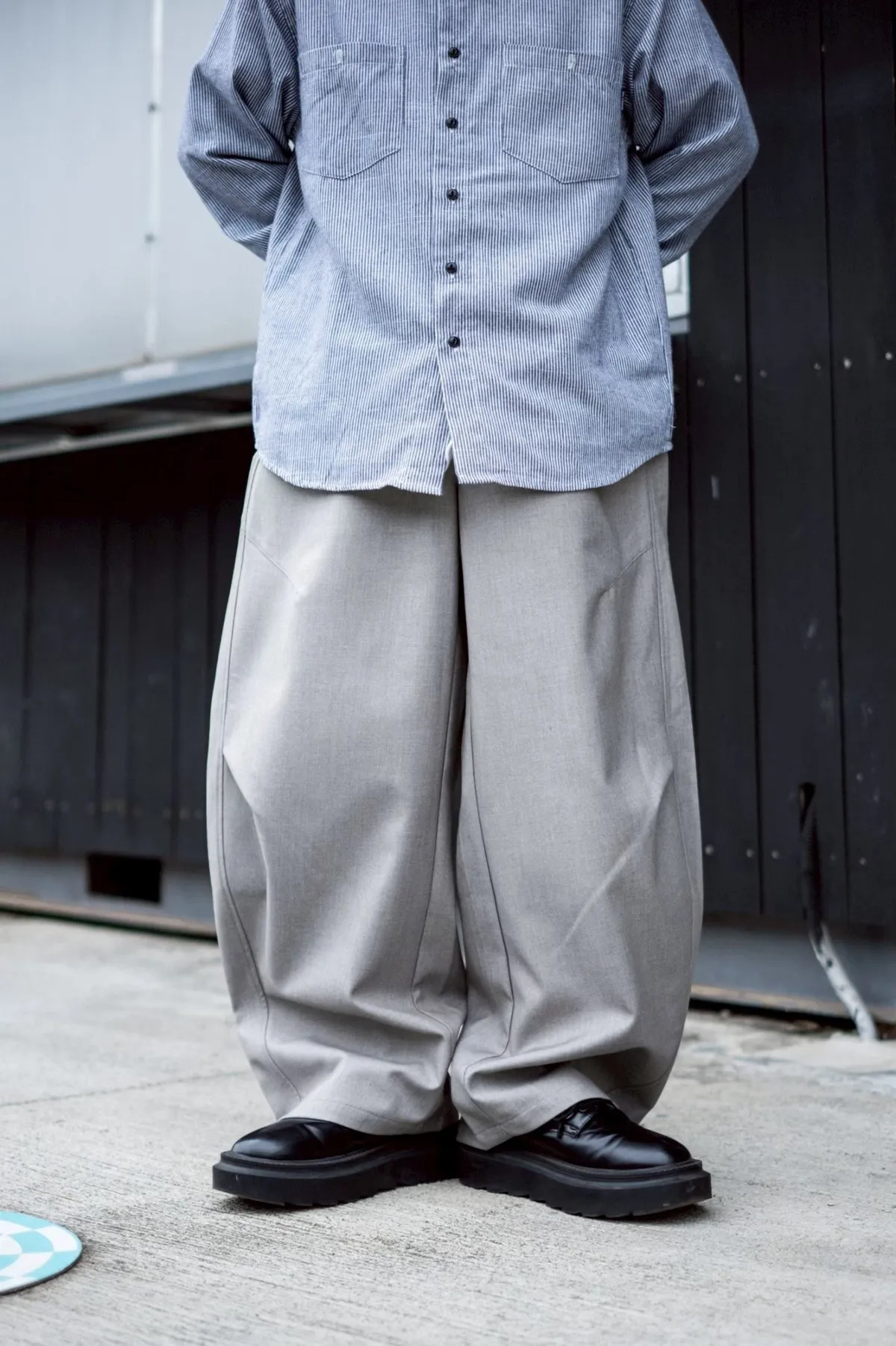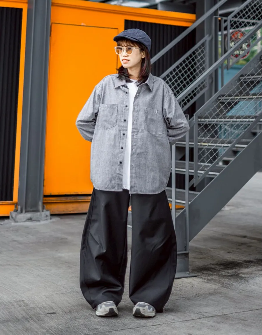 褲腳側邊斜線壓折設計 塑造立體輪廓與比例延伸